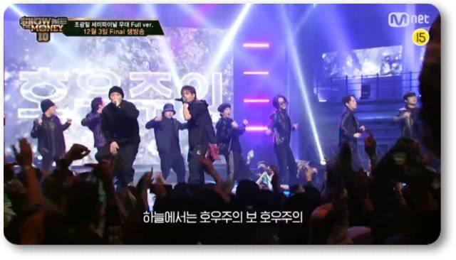 이번 진출자는 비오, 신스, 조광일, 쿤타 등으로 피처링 또한 엄청나게 화려했는데요 파이널 무대 또한 피처링이 상당히 굉장할것으로 보이는게 10주년 무대이기도 하니 강력한 피처링 가수가 나오지 않을까 조심스레 기대 해봅니다.